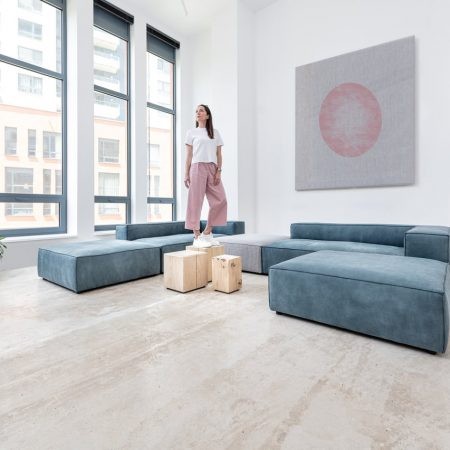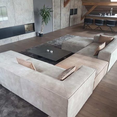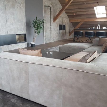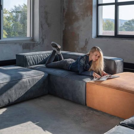 CENA OD: 1 725 € s DPH ROZMĚR SEDAČKY: 2800 x 3900 x 2100 mm MATERIÁL: Sabrela Grisú col. 701, kůže Nabuk orione – Dani leather Designová sedačka STONE lahodí každému milovníkovi moderních interiérů. Její modulárnost vám umožní experimentovat s její stavbou a rozložením v interiéru, přičemž její obrácené prošívání dodává siluetě na nevšednosti. Hlubší sezení z ní dělá ideální model pro ty, kteří využívají sedačky k lenošení a ležení. Kvalitní, husté PUR pěny udržují tvar sedačky a propracovaná konstrukce vyrobená z masivního dřeva, překližky a DTD.